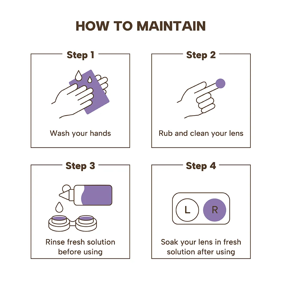 1. Preparing Your Lenses:Soak contact lenses with multipurpose solution for at least 6 hours or overnight before wearing.