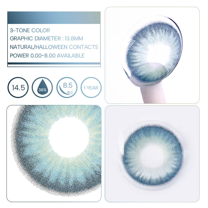 This color-embedding process divides contact lens into 3 layers, which effectively prevent the pigment layer from touching your cornea directly ensuring your eyes healthy and safe.